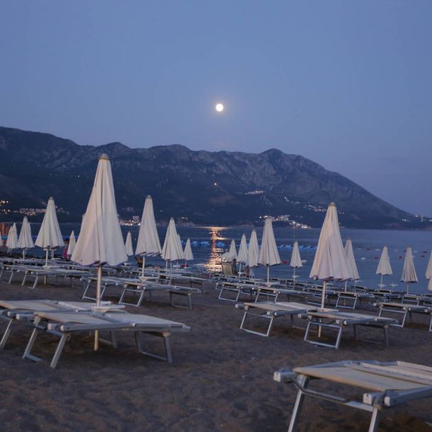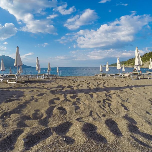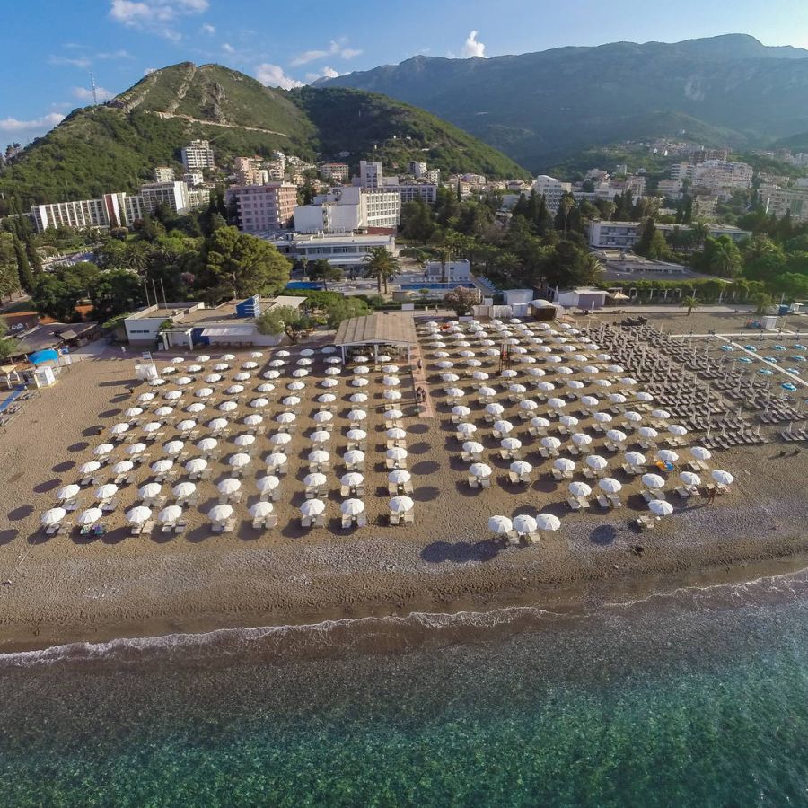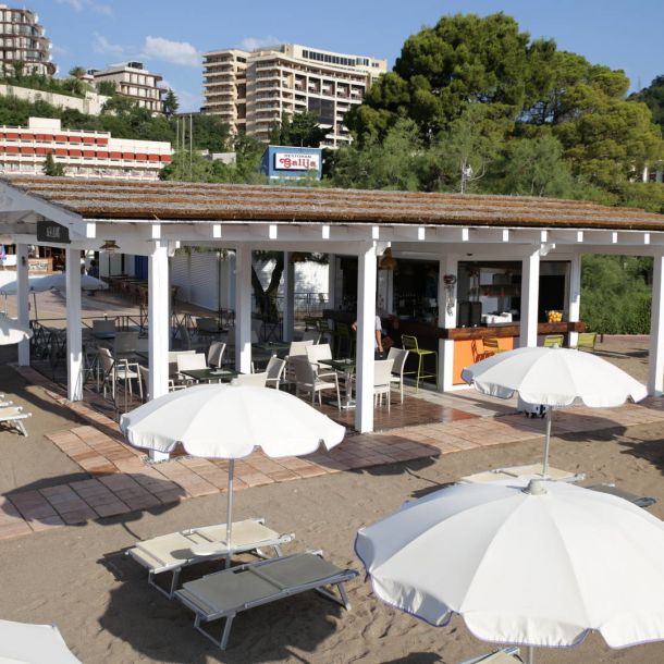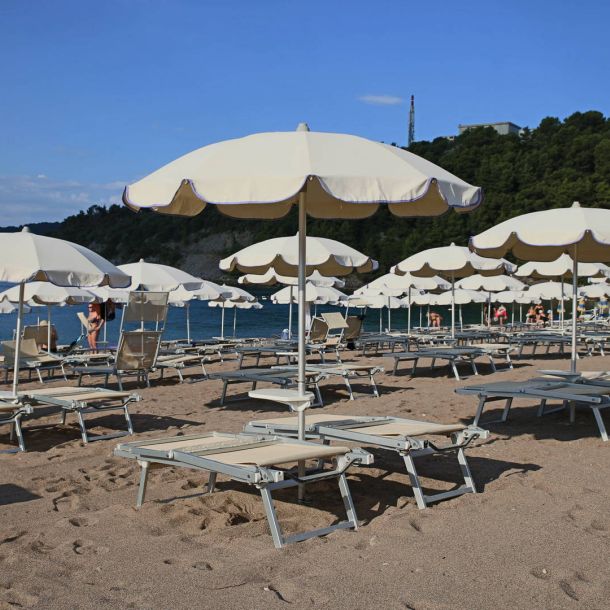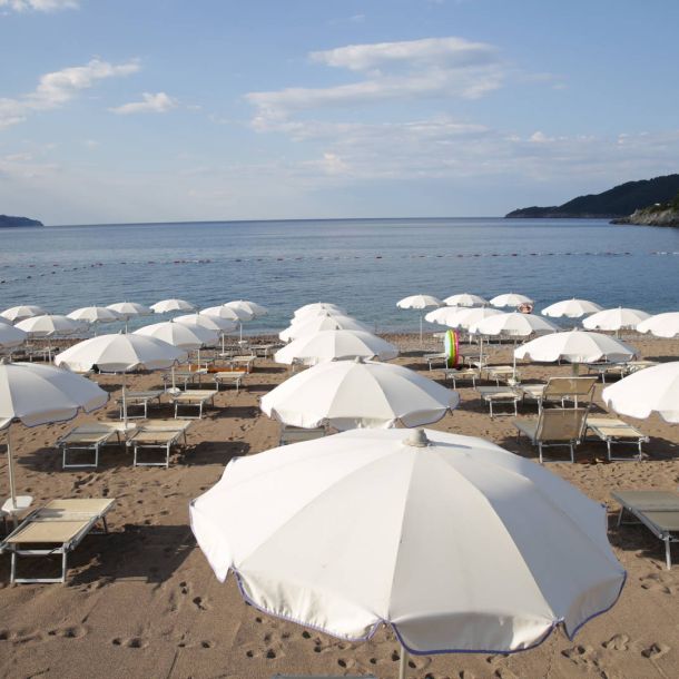 Less then 100 m away from the hotel, on one of the most beautiful beaches of Mediterranean we have a stretch 55 m which is equipped with 200 sets of two sunbeds and sun umbrella.
