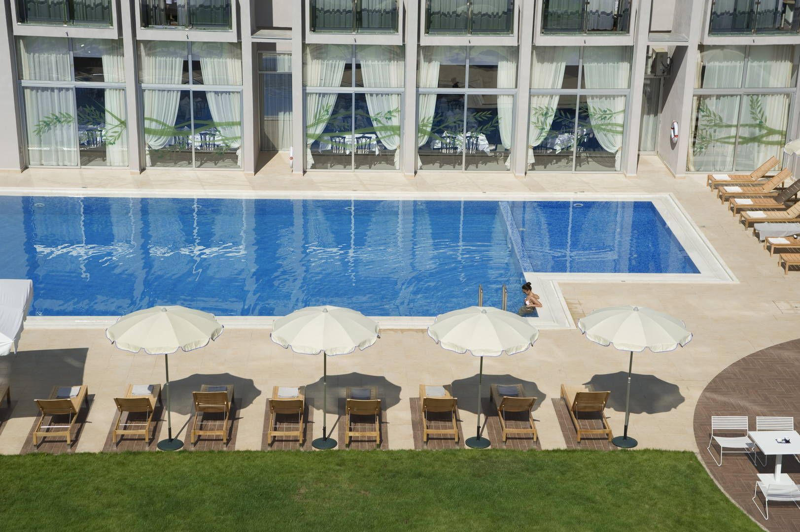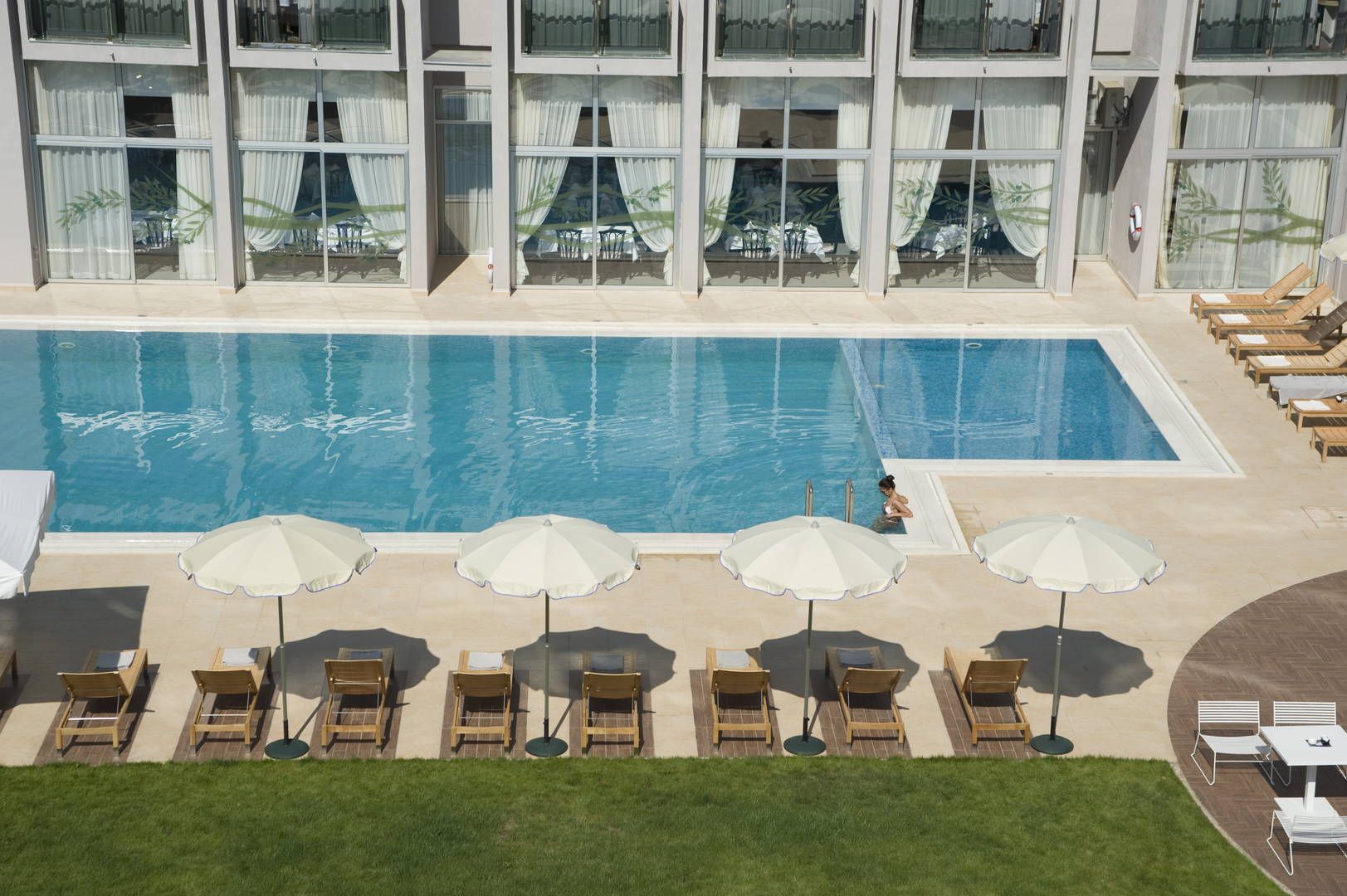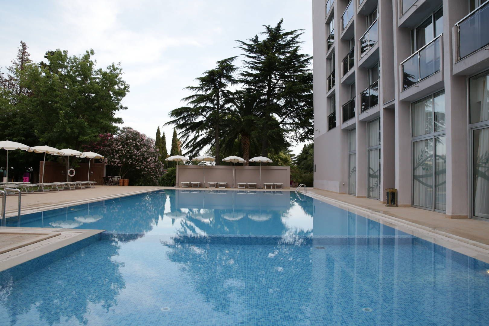 Less then 100 m away from the hotel, on one of the most beautiful beaches of Mediterranean we have a stretch 55 m which is equipped with 200 sets of two sunbeds and sun umbrella.