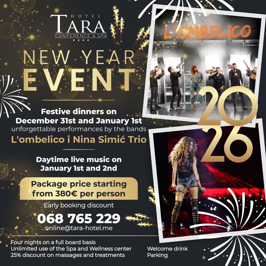 Enjoy the festive dinners on 31.12.2025 and 01.01.2026 with unforgettable performances by the bands L’ombelico and Nina Simić Trio, whose energetic tunes will make the New Year start with smiles, dancing, and joy